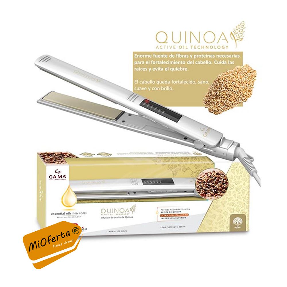 Alisador Gama Elegance Led Quinoa BECHS0000002386, podrás conseguir un alisado perfecto rápidamente ya que te permite alisar mechones grandes y con un deslizamiento increíble.La duración de la infusión de aceite es de aproximadamente 10 años considerando un uso diario.Está indicada para cabello largo, en particular si tardas mucho tiempo para alisarlo y si el peinado que deseas es principalmente liso. Cuenta con patines LONG (25x110mm).Son los más versátiles y permiten realizar diferentes tipos de looks: lisos, ondulados, etc. Ideales para cabellos cortos o poco abundantes. Suspension System permiten un mayor deslizamiento de la plancha sin fricción, dejando tu cabello sedoso, brillante, rejuvenecido y sin frizz.En pocos segundos, Elegance Led Quinoa alcanza la temperatura que va de 150ºC a 230ºC que lo podrás seleccionar visualizando su Display led, así que no tendrás que esperar mucho tiempo a que se caliente.El nivel de calor que alcanza es tenue a bastante elevado, así que estas planchas están indicadas para cabellos naturales, rizados o muy ondulados finos o gruesos para que consigas un peinado completamente liso.