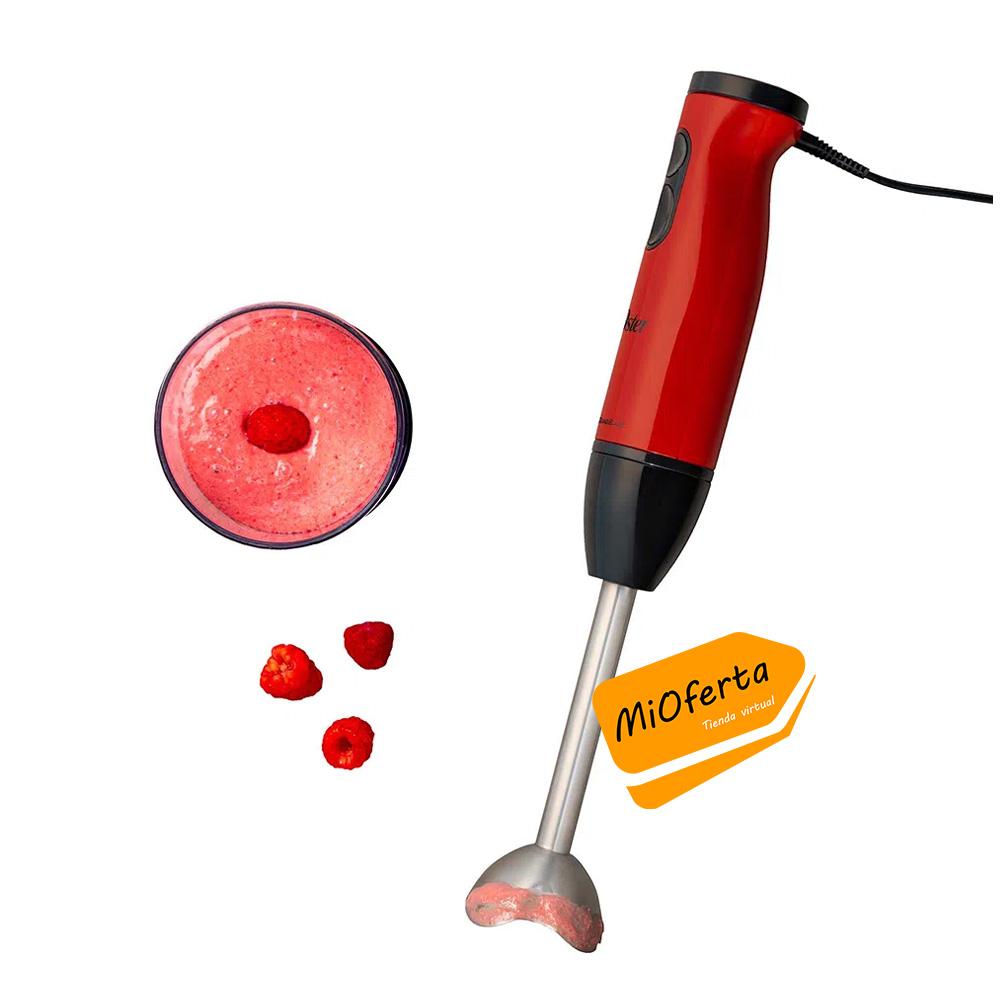 La nueva batidora de inmersión Oster te permite preparar tus bebidas y recetas favoritas. Perfecta para cualquier ocasión. La batidora de inmersión Oster cuenta con una Cuchilla Quad con 4 aspas proporciona un mezclado rápido y uniforme para preparar purés, papillas para bebé, sopas, jugos y otras recetas. Con su motor de 400 watts y ajuste de 1 velocidad con función turbo, esta batidora de inmersión hace que la preparación de alimentos sea rápida y fácil. Estas batidoras de inmersión son muy prácticas, porque por su tamaño se pueden guardar en la alacena o mostrar en cualquier lugar de la cocina. Siempre están a la mano, llistas para lo que necesites hacer. Incluye prácticos accesorios que permiten preparar una gran variedad de recetas Accesorios incluidos: vaso medidor de 500 ml para batir jugos, batidos y aderezos; picatodo de 500 ml para picar y moler con comodidad cebollas, ajos, nueces y mucho más, y batidor para batir claras, crema chantillí y mucho más, lo que te permite la preparación de una mayor variedad de recetas