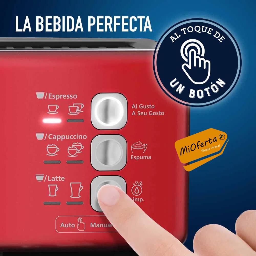 Vive la experiencia de un café auténtico y delicioso con la cafetera automática BVSTEM6603R de espresso Oster PrimaLatte. Ahora con funciones que te permiten disfrutar variedades de bebidas, desde espresso, capuccinos y lattes, hasta el uso de cápsulas de Dolce Gusto. Todo al toque de un botón. Prepara tus bebidas favoritas utilizando tu marca predilecta de café molido, mientras automáticamente espumas la leche fresca de tu elección. Todo servido en la misma taza, al momento que desees. También te ofrece un nuevo diseño, ¡Ideal para tu cocina!, práctica de usar ya que puedes ajustar al tamaño de taza que desees, gracias a su bandeja ajustable.