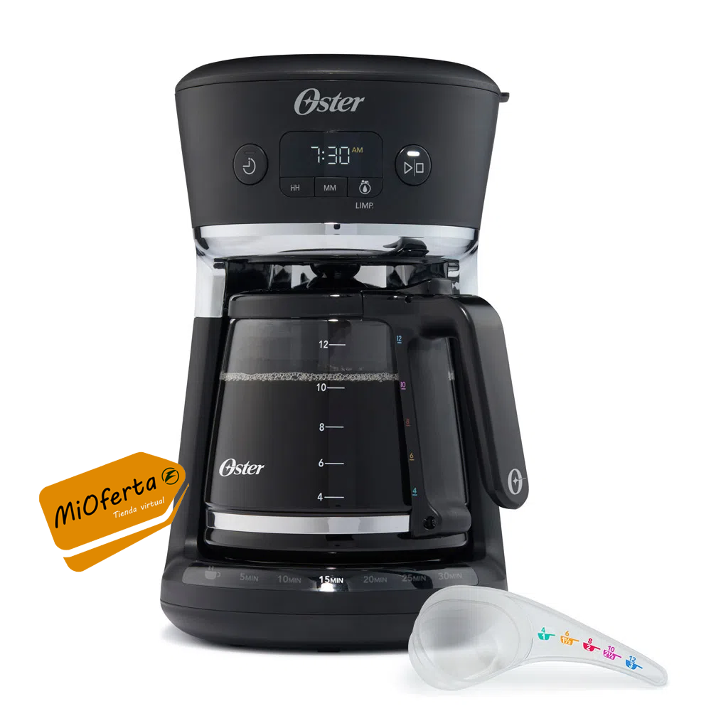 La cafetera Oster BVSTRF100 con sistema de colores para medida fácil de 12 tazas es programable y te ofrece un resultado consistente y robusto, como a ti te gusta. La forma de usarla es muy sencilla. Cada color específicamente corresponde a una medida de porción para facilitar la adición de la cantidad correcta de granos de café y agua en todo momento. Para preparar tu café, solo tienes que determinar cuánto café te gustaría preparar. Luego, haces coincidir el color correspondiente en la garrafa o jarra, cuchara medidora y ventana del agua. La guía de color te indicará cuánta agua y café molido debes añadir para obtener una consistencia robusta y sabrosa en cualquier momento.