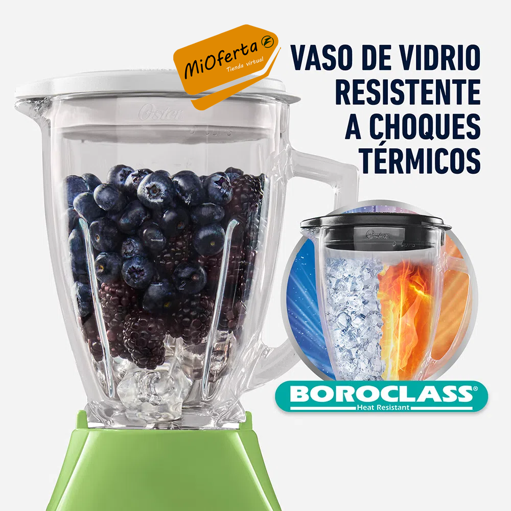 Licuadora Oster BLSTKAGKPB, poderoso motor con alta fuerza de torsión y vaso de vidrio refractario Boroclass para que siempre logres la consistencia adecuada de lo que deseas preparar ya que es ideal para preparar una amplia variedad de recetas frías y calientes, jugos, batidos, sopas y mucho más, tiene una capacidad de 1.5 litros y 2 velocidades, es resistente a un choque térmico de 90°C, que te permite procesar ingredientes calientes sin necesidad de esperar a que estos se enfríen. Encuentra un momento para agasajarte y sorprender a tus amigos. Para que logres mejores consistencias y deliciosos licuados.