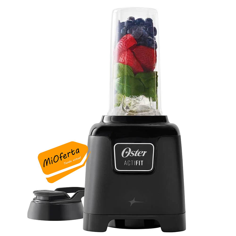 Licuadora Oster Personal con Sistema de nutrición ActiFit vaso portátil Tritan Con el sistema de nutrición Oster ActiFIT El diseño de la cuchilla disminuye el tamaño de las partículas de alimentos integrales ayudando a maximizar la absorción de los nutrientes. ¡VIVAMOS UNA VIDA SANA! Diseñada pensando en tu agitado estilo de vida, el sistema de nutrición Oster ActiFIT te brinda una nutrición inteligente, con opciones más frescas, saludables y nutritivas. Mezcla las bebidas directamente en el vaso, para que puedas llevarlas de manera conveniente a donde quiera que vayas. VASO DE TRITÁN Vaso de Tritán con tapa anti-derrames y 600 ml de capacidad, te brinda todos los beneficios de un vaso de vidrio en un material más resistente. Es libre de BPA, no retiene olores ni manchas. El bisfenol-A (BPA) es un producto comúnmente para fabricar plásticos de policarbonato. POTENTE MOTOR resistente y duradero de 450 watts ACOPLE METÁLICO 10 VECES MÁS FUERTE, Exclusivo sistema de acople metal contra metal All-Metal Drive para mayor durabilidad.