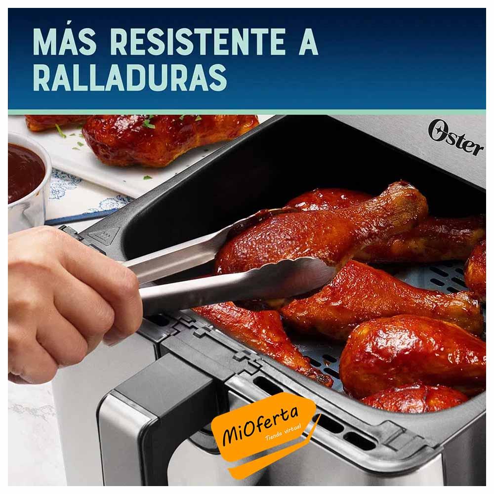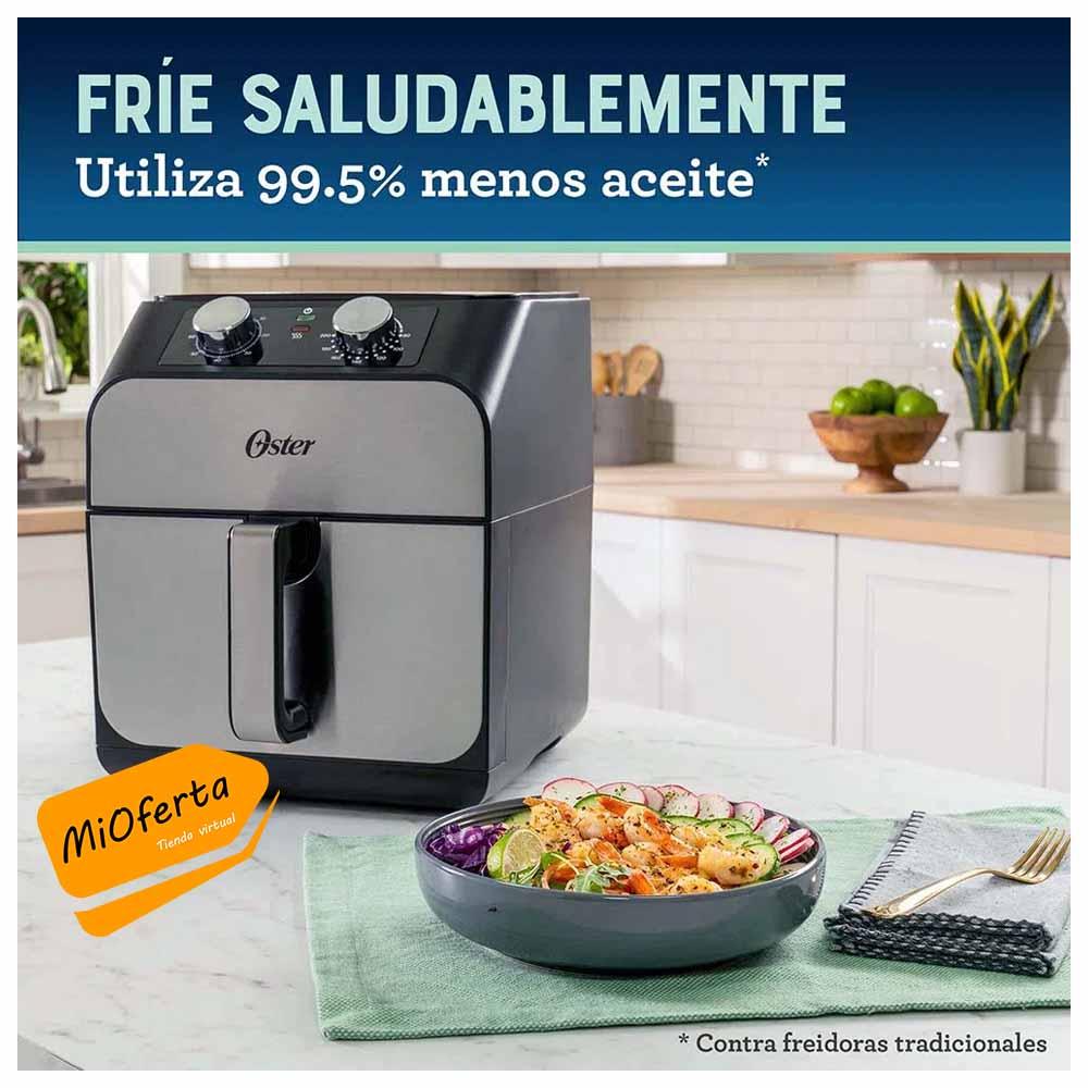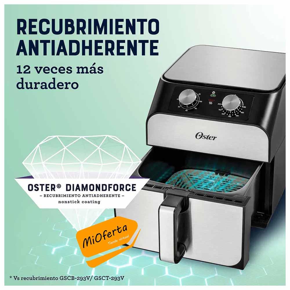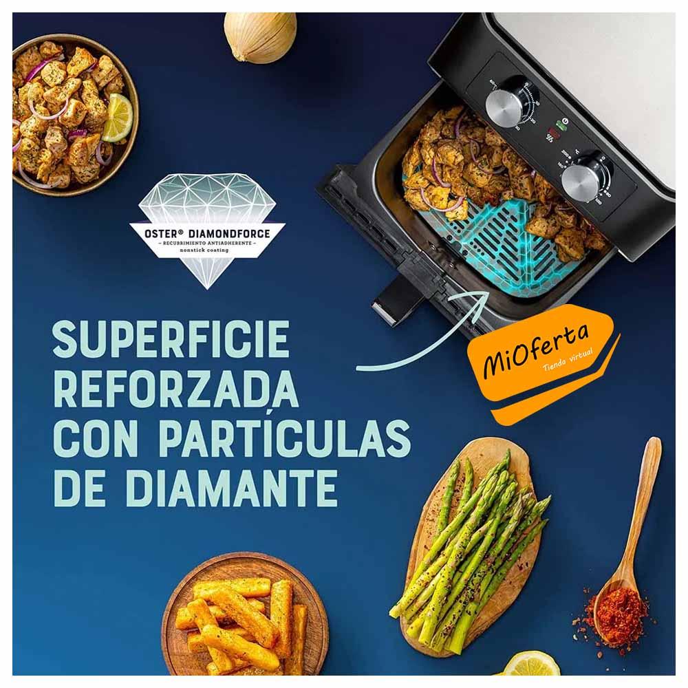 Sigue disfrutando de tus platillos preferidos de una manera saludable con la nueva freidora de aire Oster con capacidad de 6,8L.Esta innovadora freidora tiene revestimiento antiadherente DiamondForce infundido con partículas de diamante que la hace 12 veces más duradero y resistente a rayaduras y hasta 15 veces más fácil de limpiar.