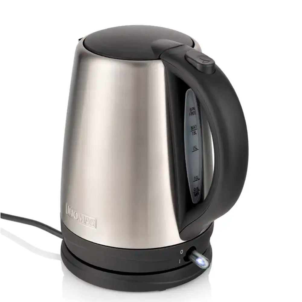 El Hervidor TH-5408i cuenta con una potencia de 2200 watts y una capacidad de 1,8 litros, garantizando rapidez en el calentamiento del agua. Su cuerpo y base interior son de acero inoxidable, lo que asegura durabilidad y un excelente rendimiento térmico. La base desmontable con giro de 360º y la luz indicadora de funcionamiento añaden comodidad y facilidad de uso. Además, incluye un indicador de llenado, tapa interior BPA free, filtro para impurezas y un sistema de seguridad contra funcionamiento en seco y apagado automático. Con garantía de 2 años, es una opción confiable y segura. Imágenes referenciales.