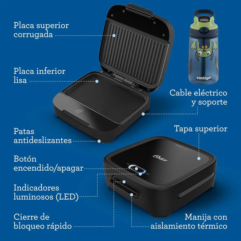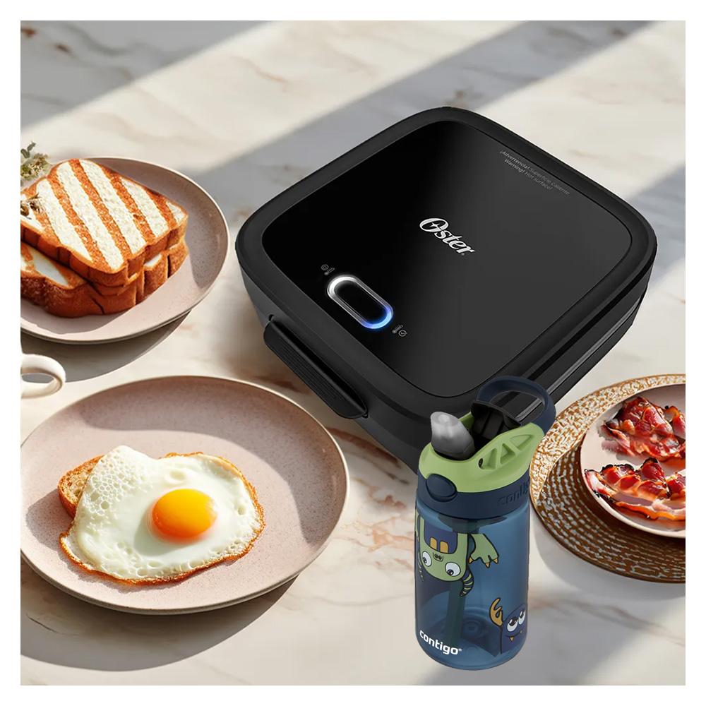 "El kit perfecto para un día lleno de energía y diversión. Prepara deliciosos sándwiches crujientes con la Sandwichera Oster CKSTSM400 y mantén a los pequeños hidratados con la Botella Contigo Kids Monsters. ¡Porque una buena alimentación y diversión van de la mano!"