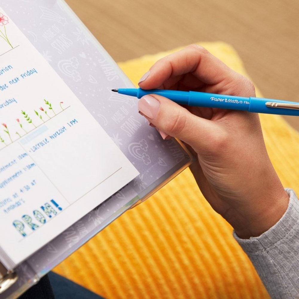 Los rotuladores con punta de microfibra Paper Mate® Flair® poseen una gran variedad de colores vivos, con los que siempre podrás encontrar el tono perfecto.