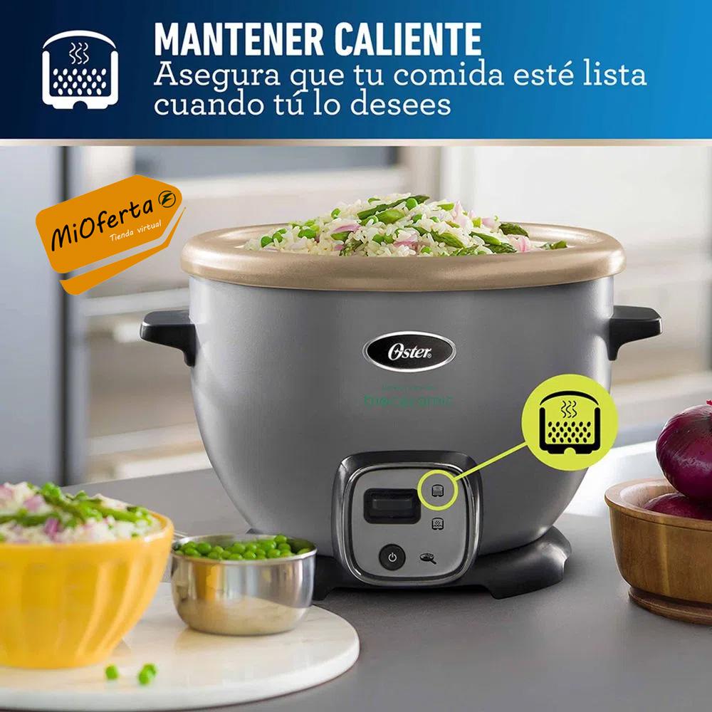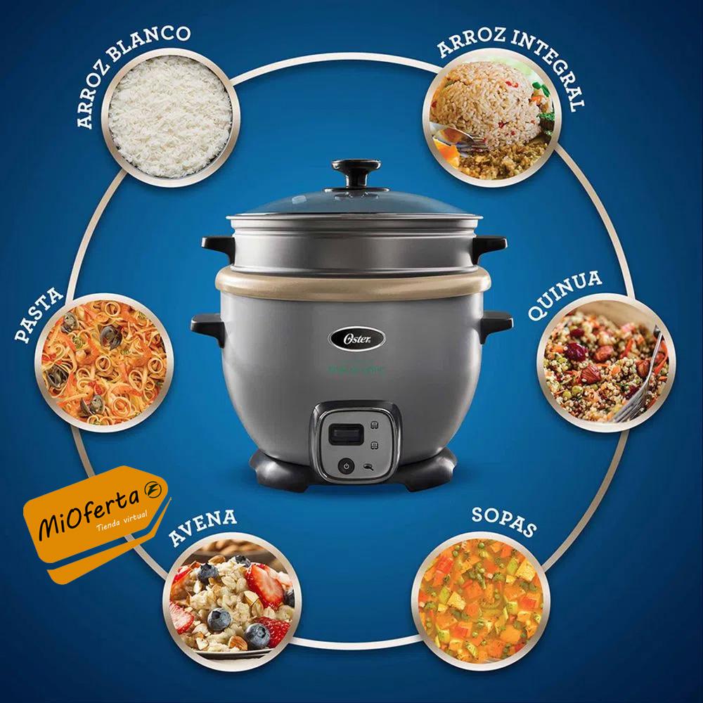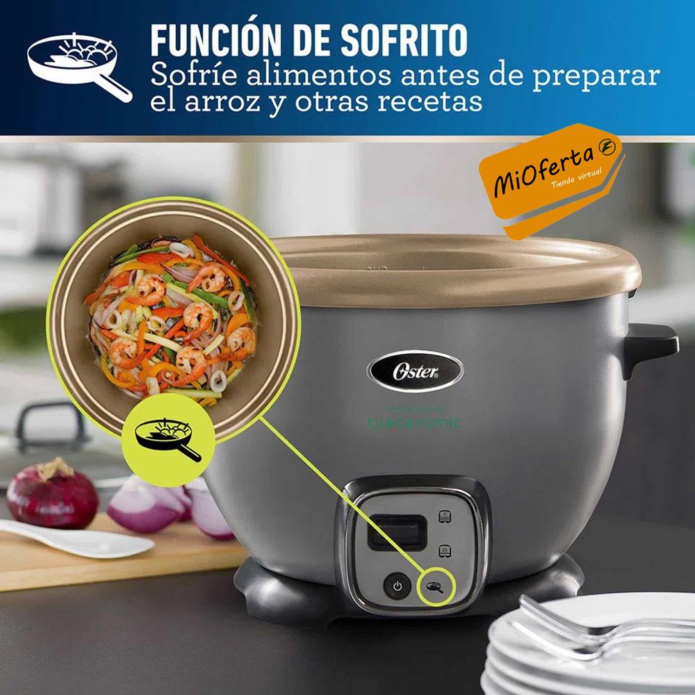 Con la arrocera multiuso Oster CKSTRC7130S con función de sofrito y bandeja de vapor preparas infinidad de alimentos de manera fácil y saludable. Gracias a su recubrimiento Bioceramic natural infundido con aceite de oliva libre de PFOA y PTFE, 8 veces más duradero y resistente a ralladuras.