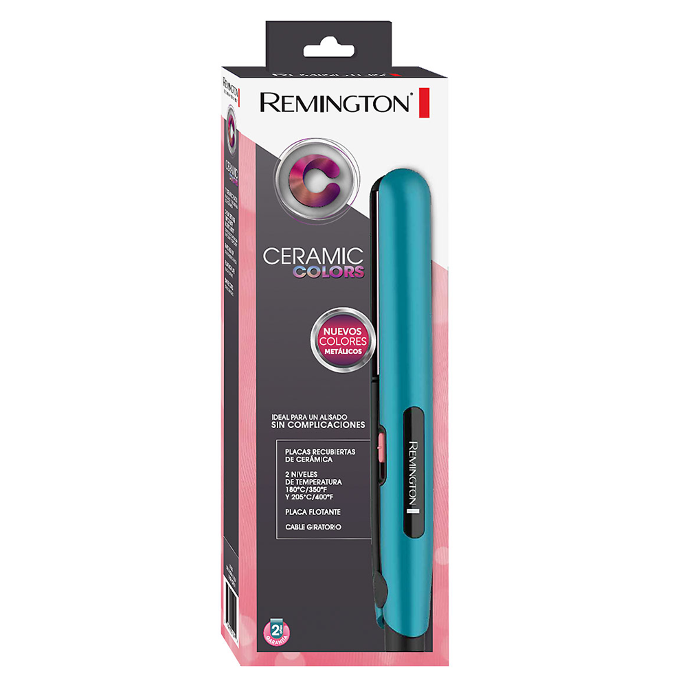 La plancha de cabello Ceramic Colors de Remington es la plancha ideal para un alisado rápido y sin complicaciones. Crea un estilo único con la plancha para cabello Ceramic Colors, gracias a sus placas de cerámica la alisadora se desplazará suavemente por el cabello logrando resultados hermosos.