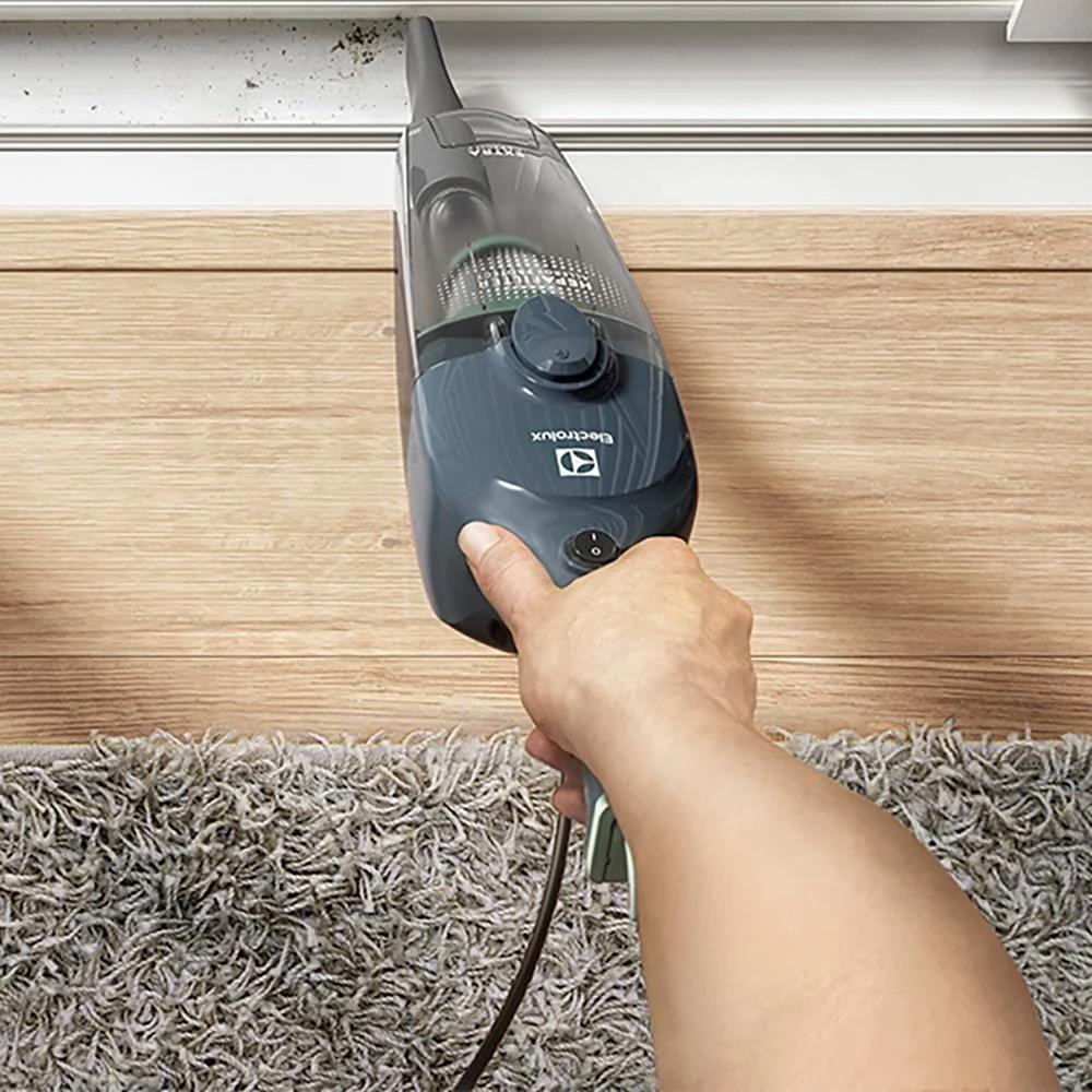 Equipada con una boquilla para rincones y un depósito de capacidad total de 1,6 L, la aspiradora 2 en 1 permite una limpieza aún más eficiente de las esquinas de difícil acceso, como ventanas y el espacio entre muebles, además de la boquilla para pisos de 180º lo que facilita la limpieza de todos los rincones y accesos de su hogar. Para reducir de la necesidad de cambiar constantemente de enchufes, la Aspiradora Electrolux cuenta con un cable eléctrico largo, de 5 metros y soporte del cable eléctrico y alta potencia de succión, favoreciendo una limpieza práctica, rápida, eficiente.