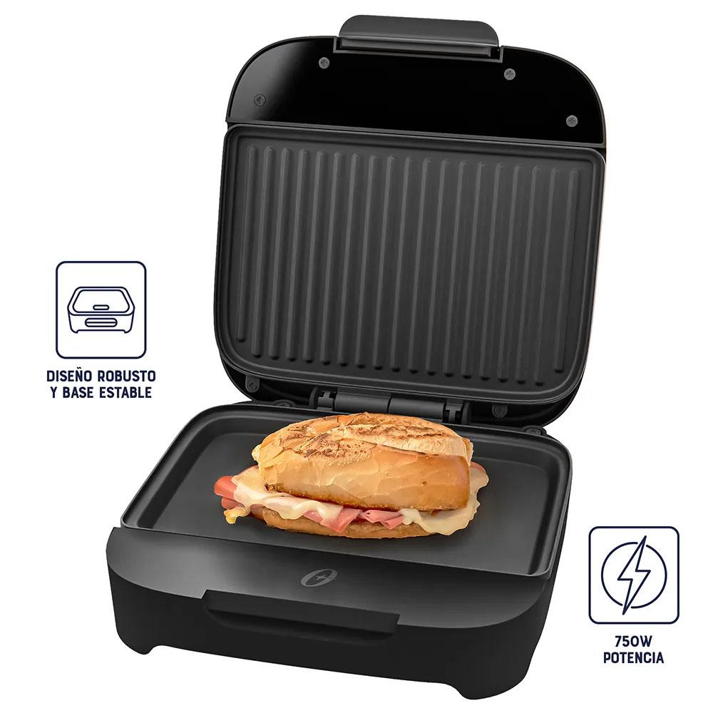 Tu preparación de la manera más rápida y deliciosa: sándwiches o bocaditos sellados en aproximadamente 4 minutos y con un tostado perfecto y consistente gracias a su termostato automático. Las placas de cocción antiadherentes colaboran con la fácil limpieza de tu electrodoméstico.