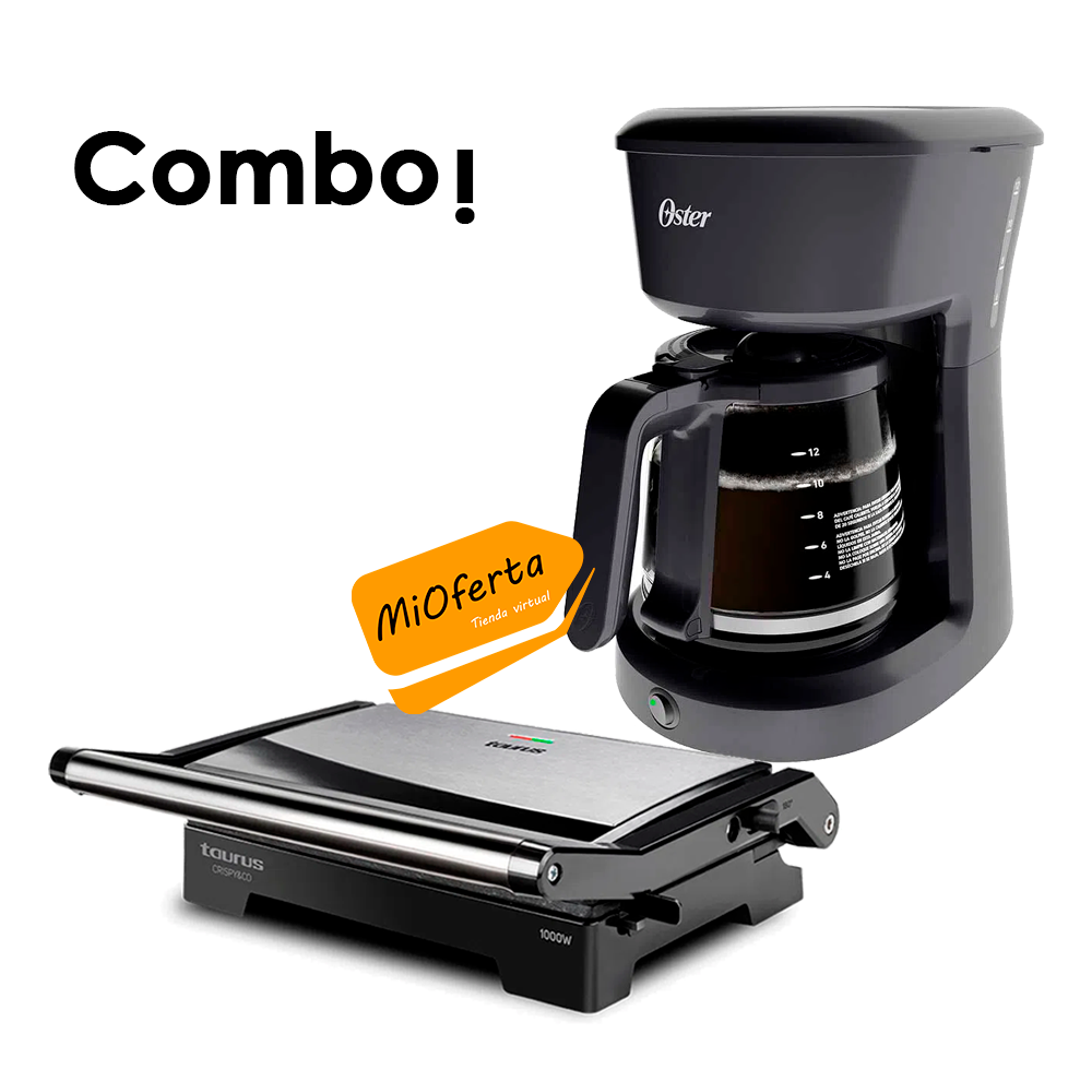 Combo Cafetera Oster 12 Tazas BVSTDCS12B+Mini Grill Taurus CRISPY&CO