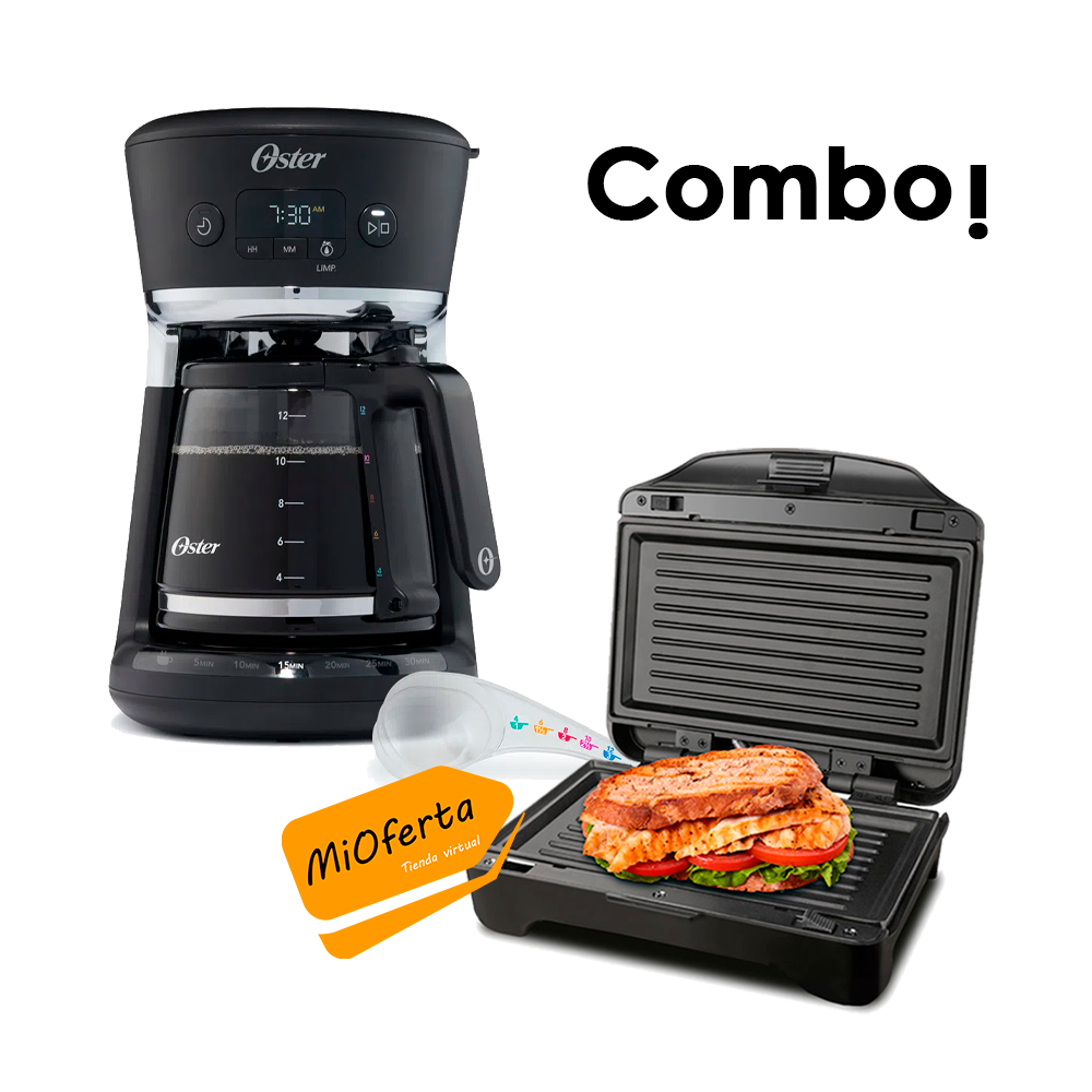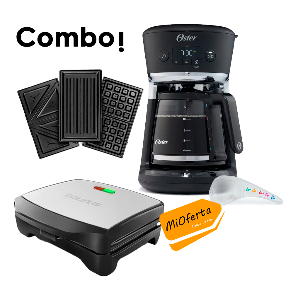 Combo Cafetera Oster BVSTDCS12B 12 Tazas+Sandwichera Taurus MIAMI PREMIUM