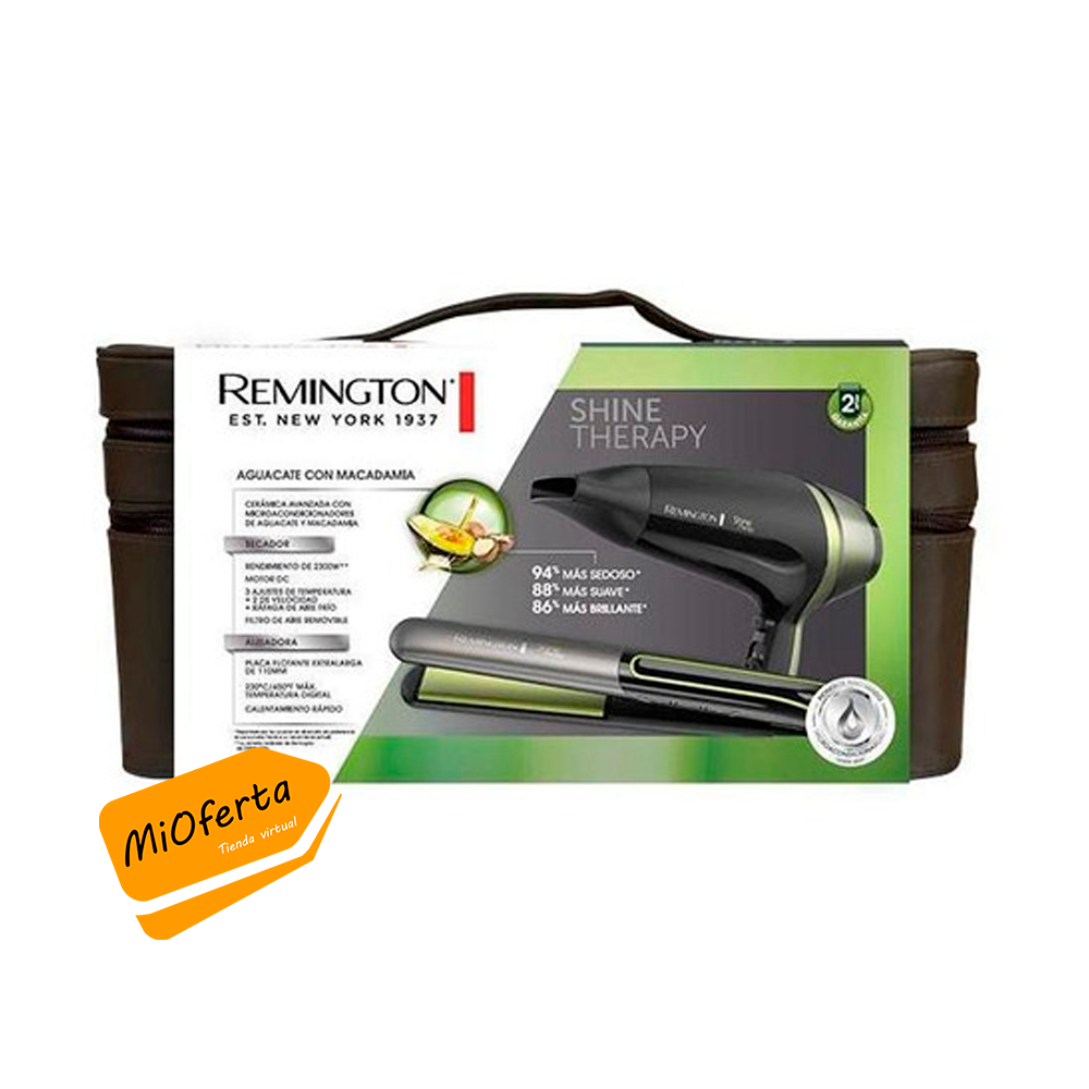 Logra resultados rápidos con mayor protección gracias a la tecnología iónica de Remington. Con este Combo alisador+secador S12A-D13A con microacondicionadores de aguacate y macadamia obtendrás un cabello brillante y libre de frizz.