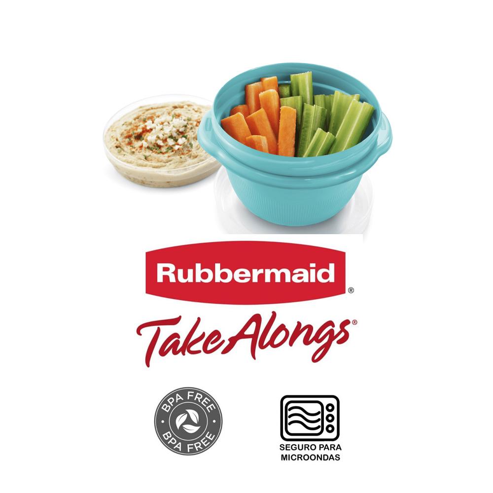 La Linea TakealongsTM de Rubbermaid es versátil y liviana para un transporte fácil y mayor organización en nuestra despensa o refrigerador. La tecnología QuikClickTM en las tapas hace click para estar seguro cuando está completamente cerrado. Base transparente para mejor visibilidad del contenido almacenado. Bases con marca de graduación. Bases y tapas libres de BPA y aptas para microondas, lavavajilla y congelador.