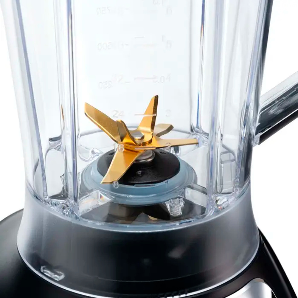 La Licuadora TH-790D cuenta con un potente motor de 1200 watts (1,6 HP) que permite pulverizar los ingredientes más difíciles en menor tiempo. Su jarro de plástico PCTG de 1,85 litros es altamente resistente a golpes y altas temperaturas, y está equipado con 6 cuchillas de acero inoxidable extra grandes de 3 pulgadas recubiertas de titanio. Ofrece un acople metálico superior para una mejor transferencia de torque y durabilidad. Incluye 3 programas automáticos (malteadas, pica hielo y autolimpieza), perilla de control de velocidad y función de pulso. Además, cuenta con un sistema de bloqueo y seguridad en el jarro, tapa dosificadora, vaso dosificador y cuerpo de acero inoxidable. Con garantía de 2 años, es una opción robusta y confiable para cualquier cocina.