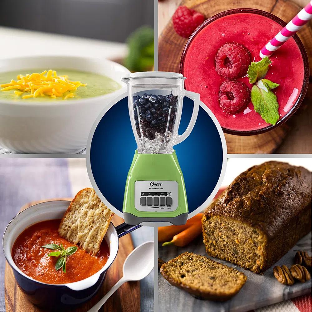 El poderoso motor con alta fuerza de torsión y vaso de vidrio refractario Boroclass de la licuadora Oster son ideales para preparar una amplia variedad de recetas frías y calientes, jugos, batidos y mucho más