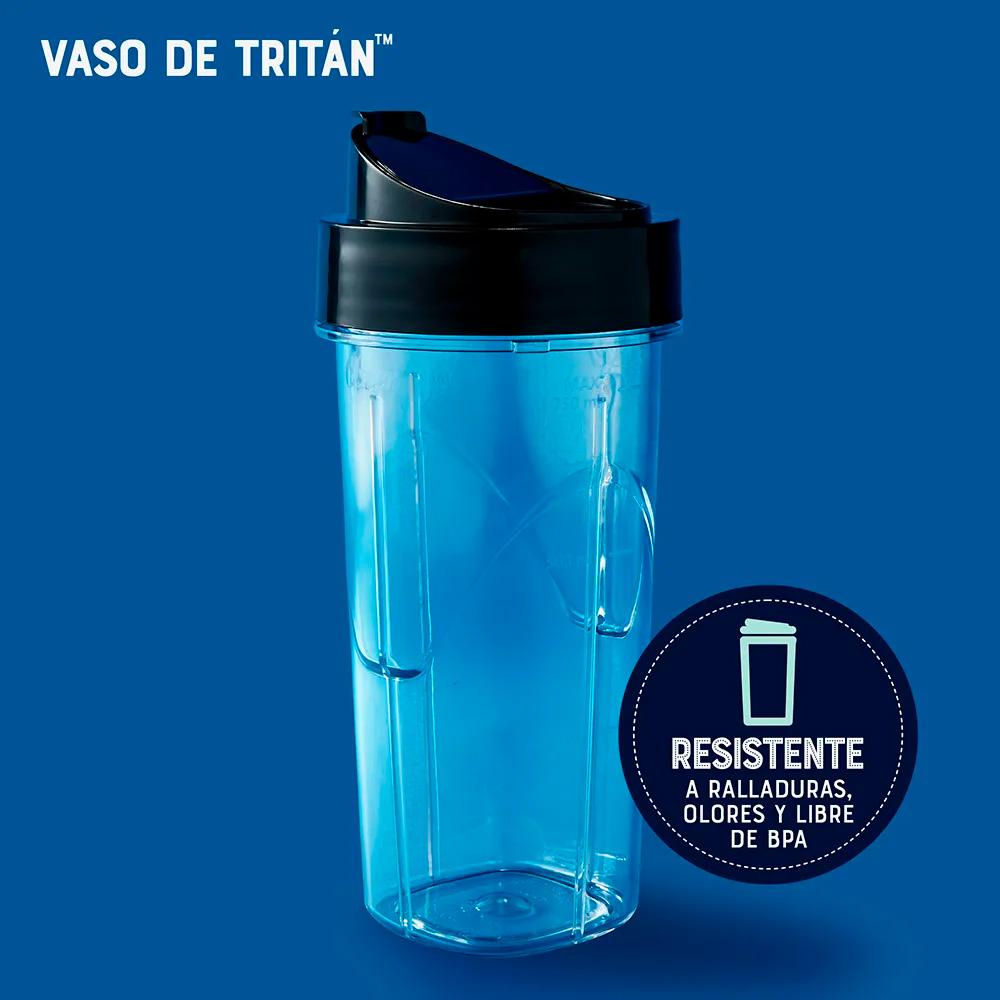 Prepara smoothies, jugos y batidos en tres pasos: llenar el vaso con los ingredientes, licuar al toque de un botón y llevar contigo adonde quiera que vayas