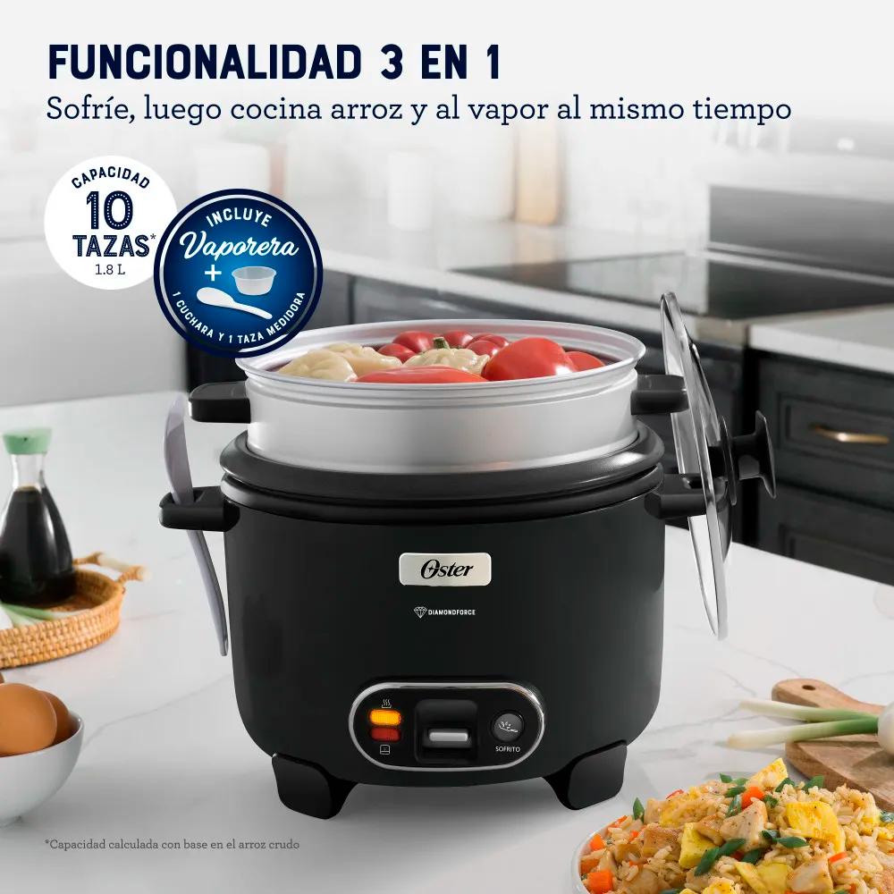 Olla Arrocera de 1.8 Lts Oster Funcion Sofrito con Vaporera CKSTRC10DFBLK