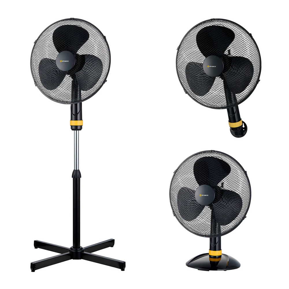 Ventilador 3 en 1 Imaco 16" Pedestal Mesa Pared FSM1650 Negro